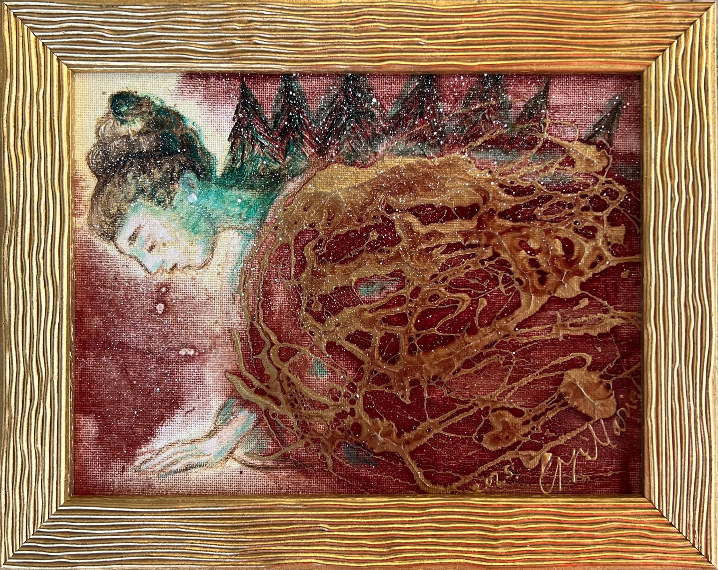 Kannab metsa endaga Suurus: 29x23 cm Aasta: 2025 Tehnika: Õli / akrüül / lõuendkartongil Formaat raamiga Hind: 680 € Pane korvi Maksma jaga